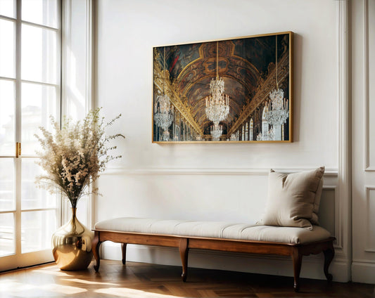 Palace of Versailles Hall of Mirrors Gold Chandelier Photography Print II