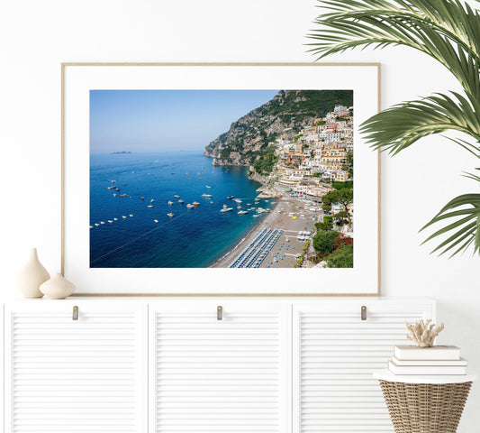 Positano Aerial Beach Umbrella Print | Amalfi Coast Italy Photography