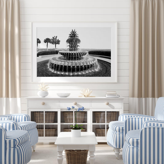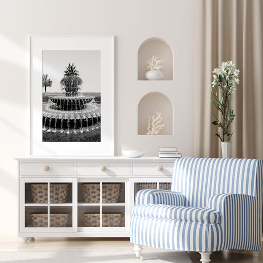 Black and White Charleston Pineapple Fountain Print