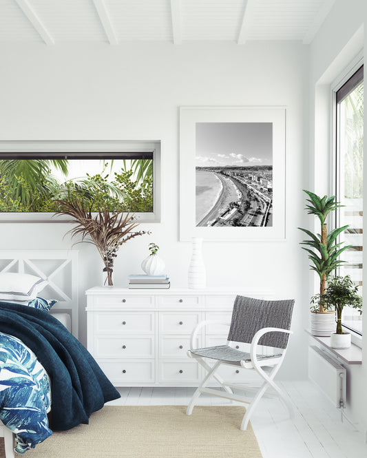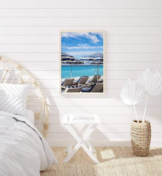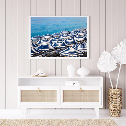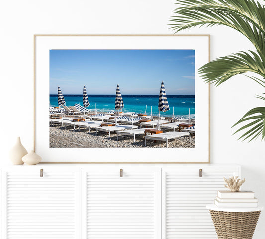 Black and White Cote d'Azur Beach Umbrellas Print II