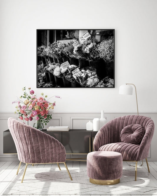 Black and White Paris Flower Market Photography Print