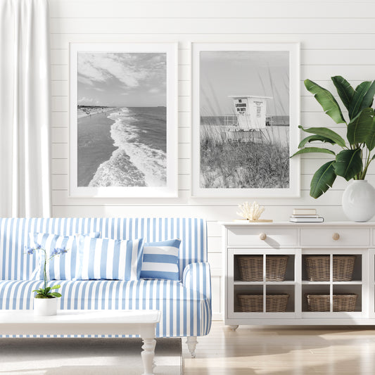 Black and White Lifeguard Tower Beach Print