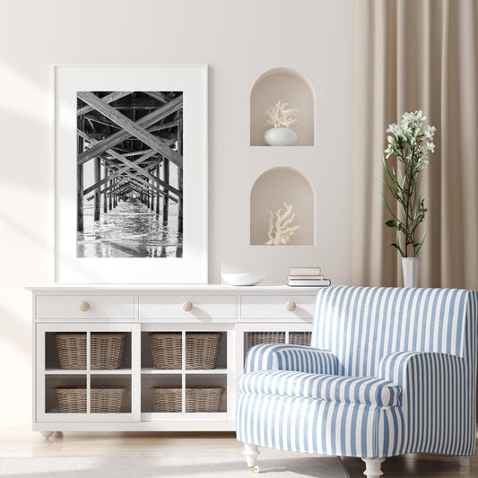 Black and White Nice France Beach Print | Black and White Beach Photography Print