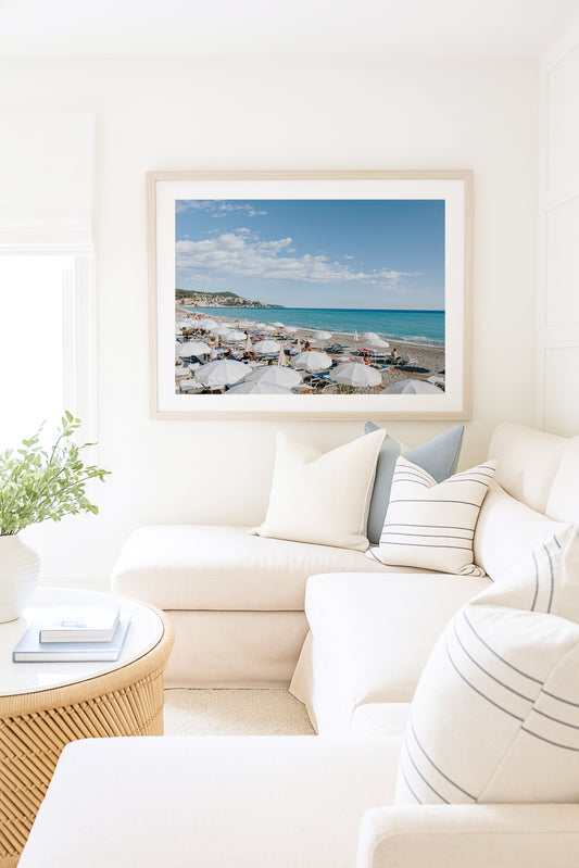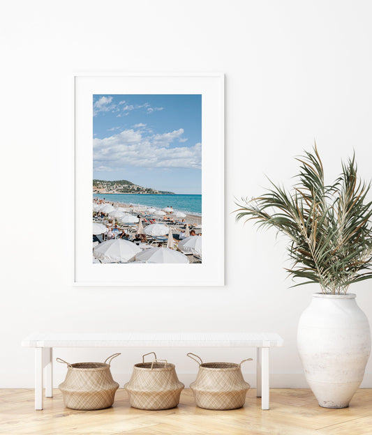 White Beach Umbrellas Photography Print | French Riviera Photography Print