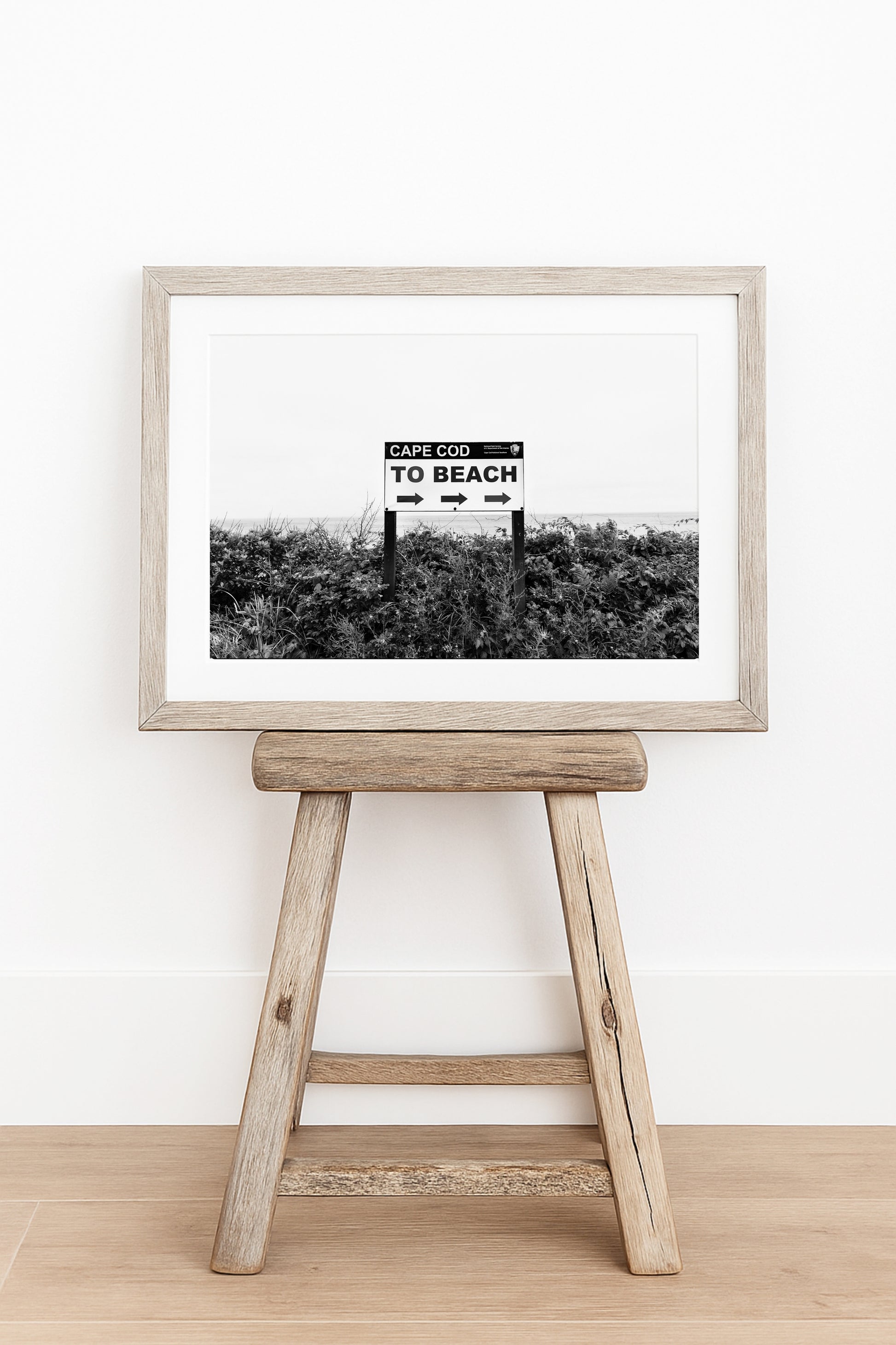 A classic nod to coastal life, this black and white photography print features a weathered sign pointing the way to a Cape Cod beach. Clean, simple lines make it a standout piece for modern coastal decor, perfect for adding personality to entryways, beach houses, or relaxed living spaces. Whether you're decorating with a fisherman aesthetic or looking for art for hotel or Airbnb spaces, this piece fits effortlessly. Ideal for those who love Provincetown, Hyannis, and everything Cape Cod.