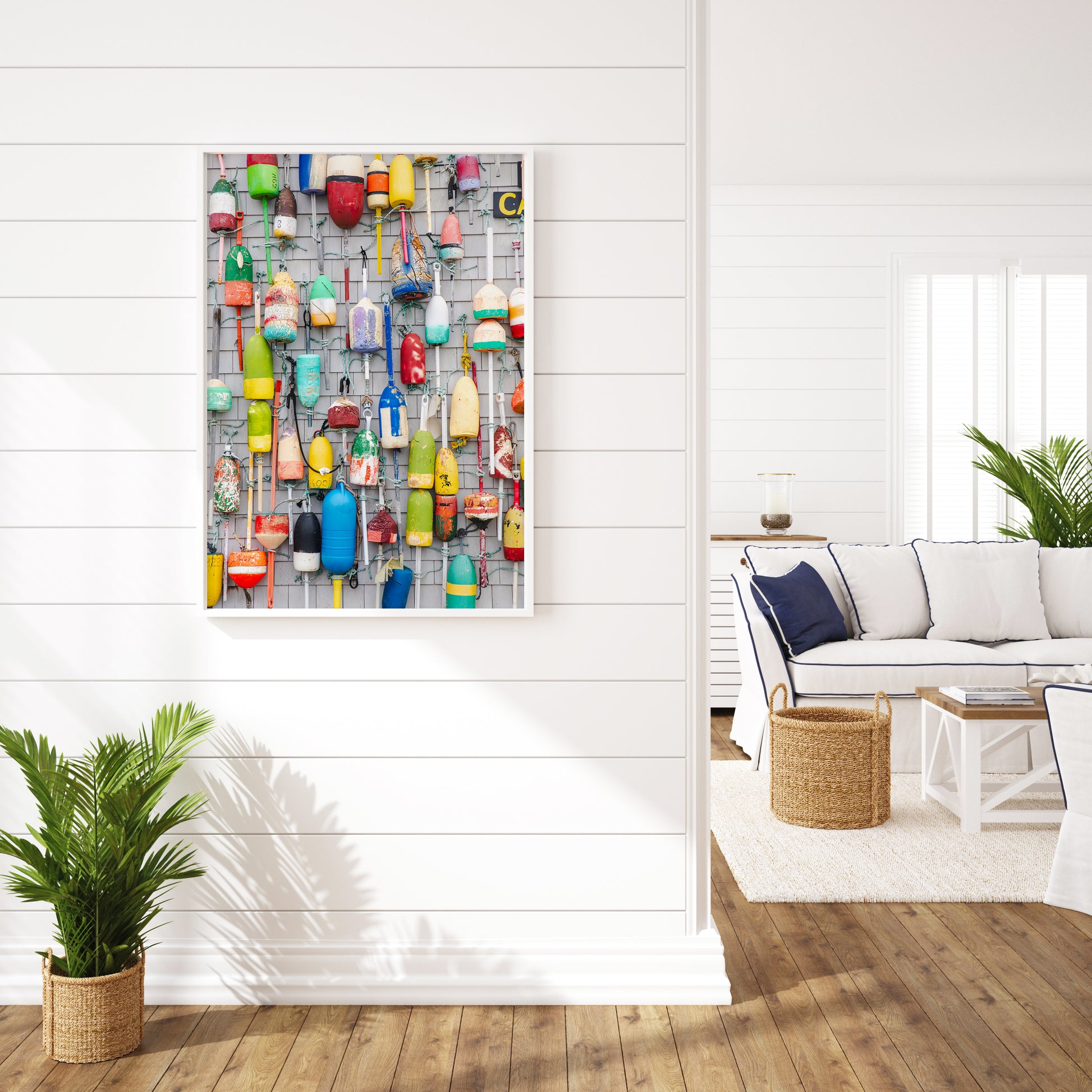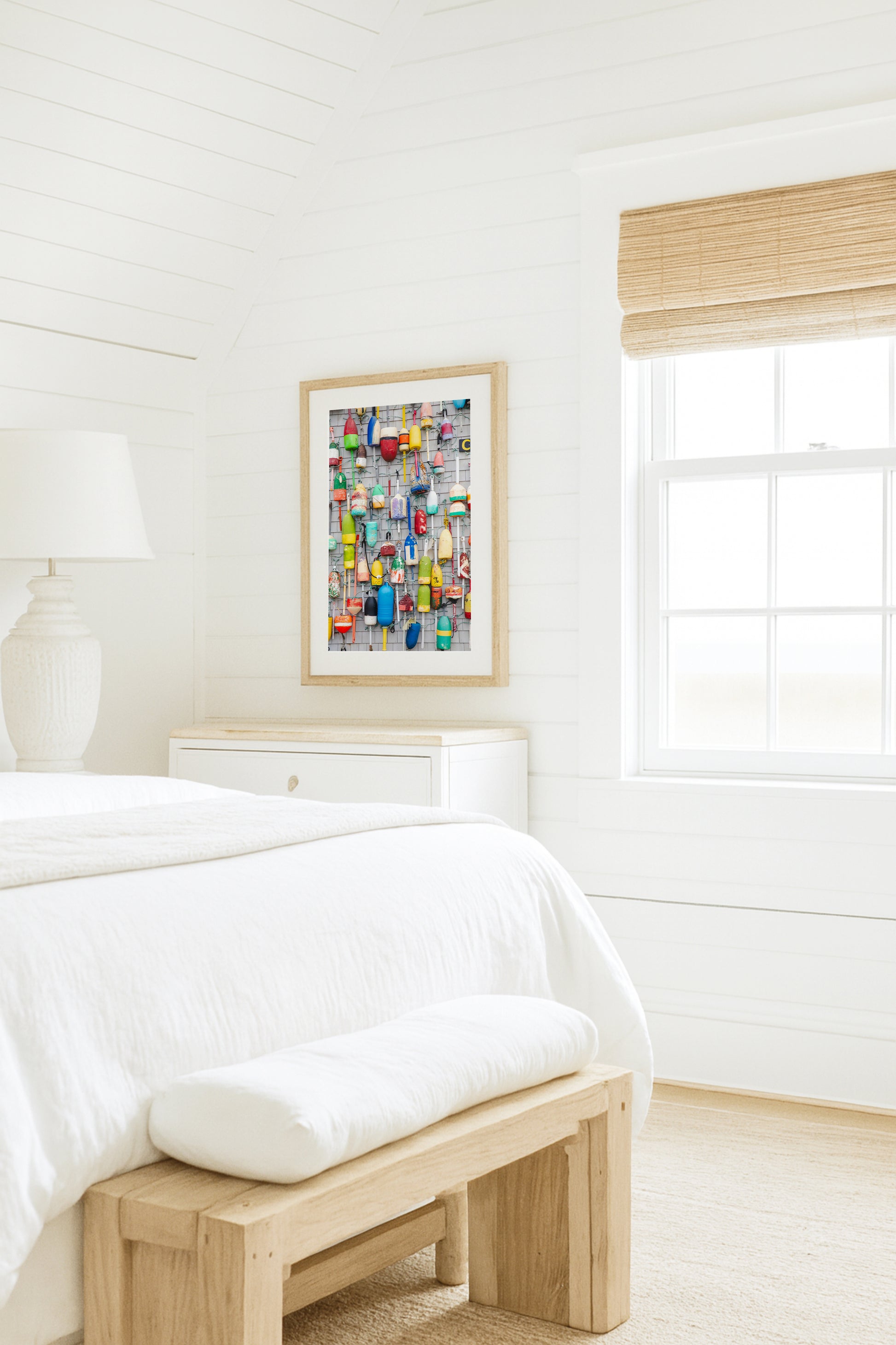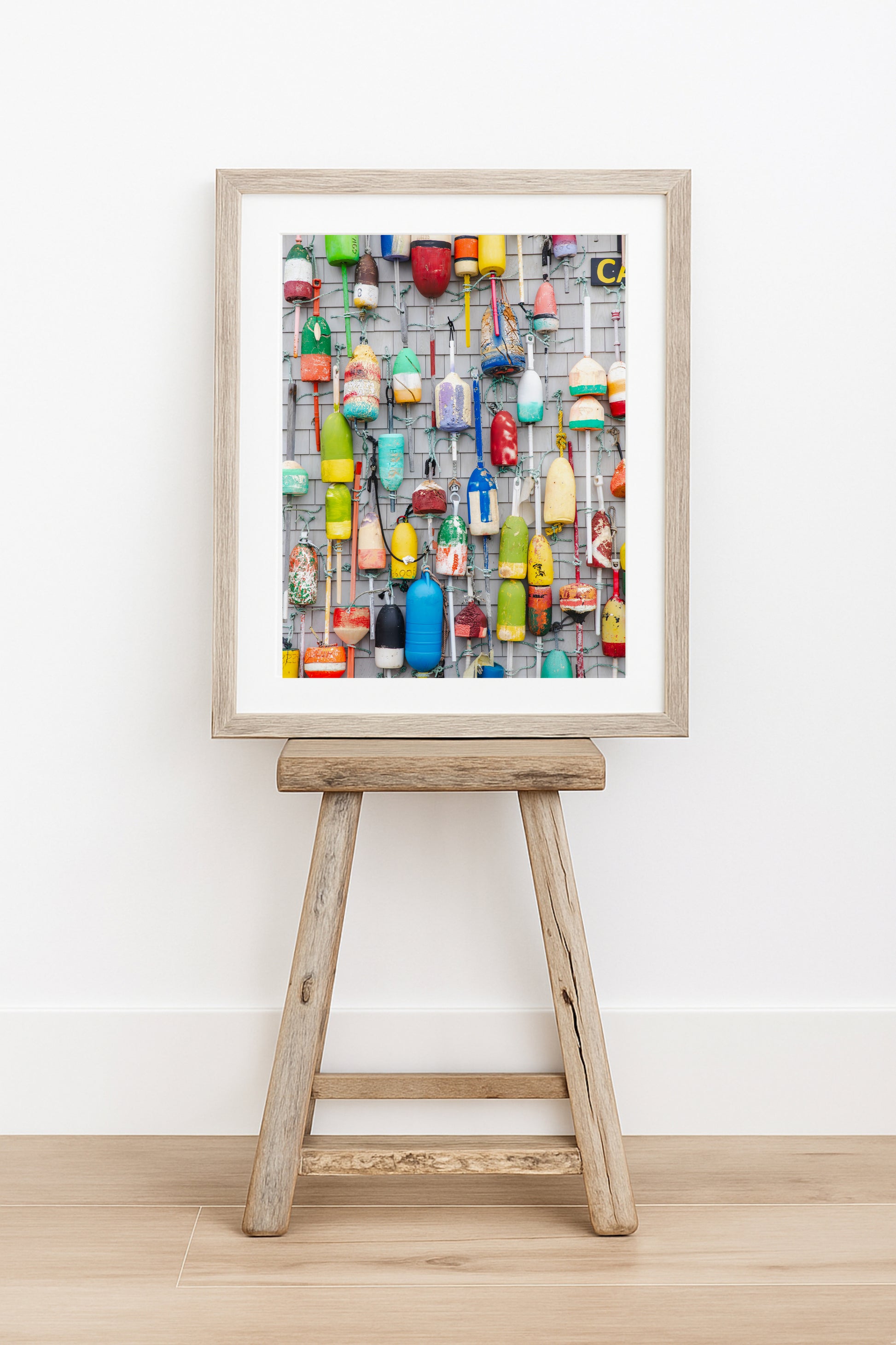 A timeless nod to the working harbors of New England, this colorful buoy print brings a rustic coastal charm to any room. Photographed in Cape Cod, this piece captures a wall of well-worn fishing buoys—each one weathered by salt, sun, and sea. It’s the kind of detail you’d spot while exploring quiet dock towns or roadside seafood shacks.